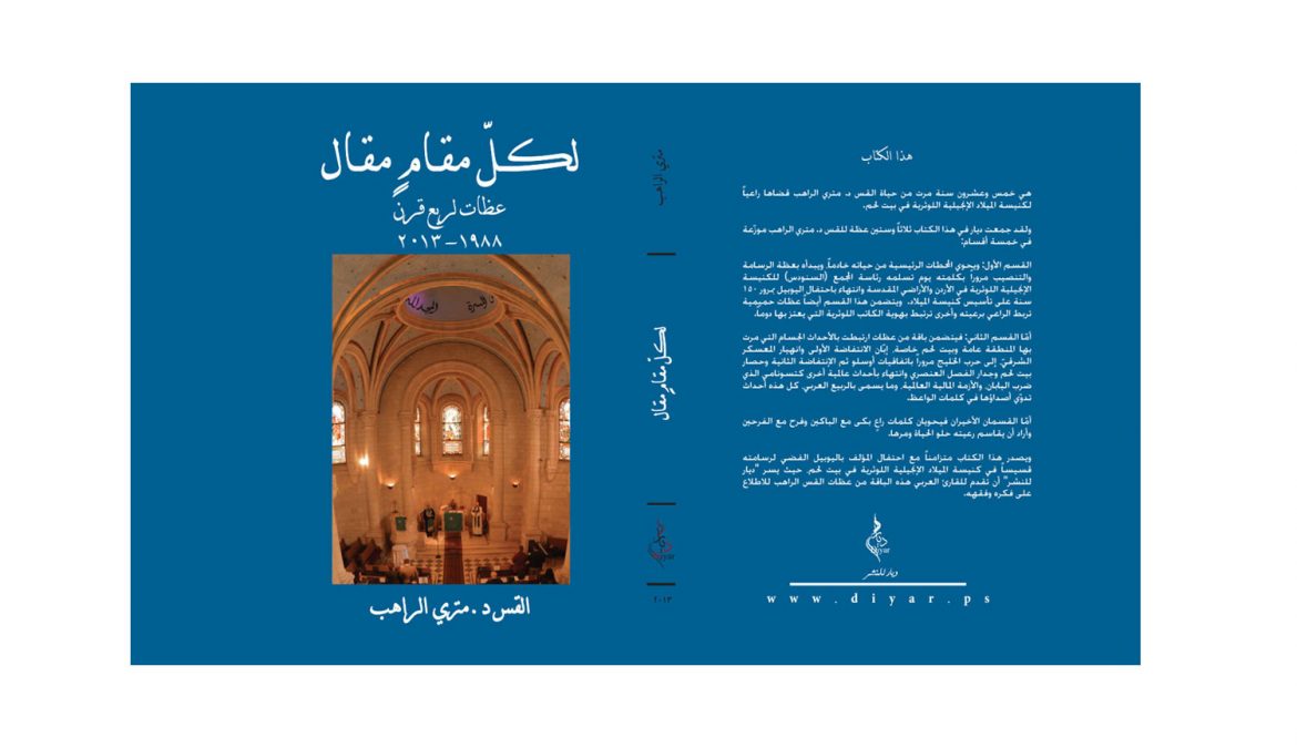 الكتب لكل مقام مقال by لكل مقام مقال – القس د. متري الراهب Loading... Taking too long? Reload document | Open in new tab مقدمة الناشر Loading... Taking too long? Reload document | Open in new tab أفراح Loading... Taking too long? Reload document | Open in new tab كلمة وحدث Loading... Taking too long? Reload document | Open in new tab إنما الناس سطور كتبت في قلب الله Loading... Taking too long? Reload document | Open in new tab محطات Loading... Taking too long? Reload document | Open in new tab 0 comment 0 FacebookTwitterPinterestEmail previous post زخريا أبو فحيلة next post دار الكلمة الجامعية تطلق كتاب التاريخ الاجتماعي لمدينة بيت لحم وتتوج الفائزين بمسابقة اسماعيل شموط للفن التشكيلي 2020 You may also like خواطر فلسطينية ميلاد كنيسة فن الزغــاريد الشعبية في الاعراس الفلســطينية ذكريات عالبال